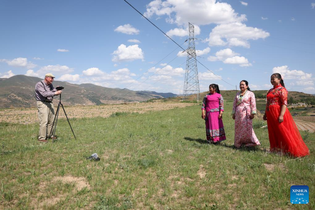 Frank Kouwenhoven films a Hua'er show in Minxian County, northwest China's Gansu Province, June 11, 2025.(Xinhua/Chen Bin)