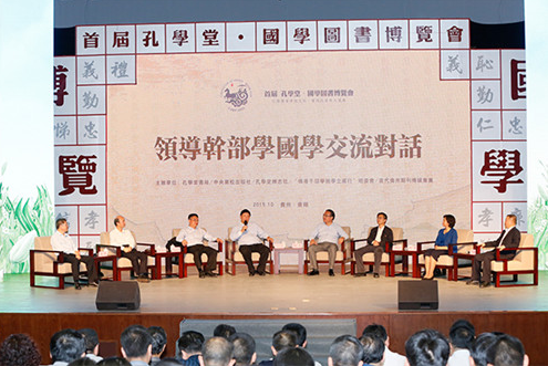 10月17日,作为首届孔学堂·国学图书博览会的主体活动之一,“领导干部学国学全国行·走进贵州贵阳”启动仪式在贵阳孔学堂阳明大讲堂举行,与会嘉宾围绕“领导干部如何读经典、学国学”的话题,与现场读者分享、互动。