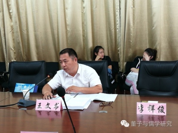 王文书博士演讲的题目为《周辅成和<论董仲舒思想>》。周辅成的专著《论董仲舒思想》在董学研究中具有特殊的地位,盘点建国后董仲舒研究成果,该书是无论如何也不能绕开的。这本著作是特殊年代里的特殊著作,是董学研究的里程碑,深深地镌刻着时代的烙印。王博士以小见大,从一本董学研究著作入手使人了解到五十年代董仲舒研究的时代风貌。