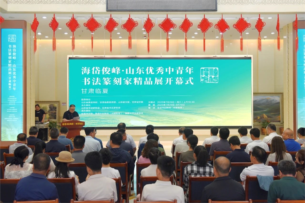 7月29日上午,海岱俊峰·山东优秀中青年书法篆刻家精品展在甘肃省临夏州开幕。