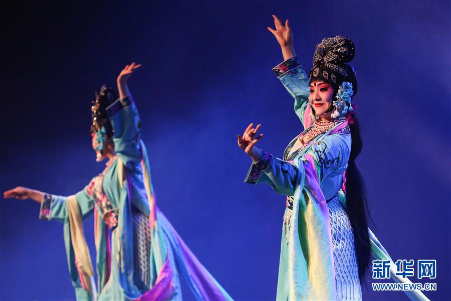 1月18日,在比利时列日,演员表演京剧《天女散花》。 1月17日至18日,来自中国武汉的艺术家们在比利时布鲁塞尔和列日举行“欢乐春节”文艺演出,与华侨华人、当地民众共同迎接中国农历新年。(新华社记者 郑焕松 摄)