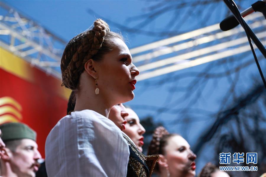 2月22日,在塞尔维亚首都贝尔格莱德举行的一场声援中国抗击新冠肺炎疫情的音乐会上,当地歌手演唱中文歌曲《茉莉花》。新华社记者 石中玉 摄