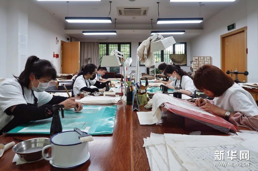 天一阁藏品修复部目前有修复师14人,每年约修复古籍14000余页。据介绍,修复一册古籍通常需要1至2个月,有的甚至需要1年以上。 新华社记者 郑梦雨 摄