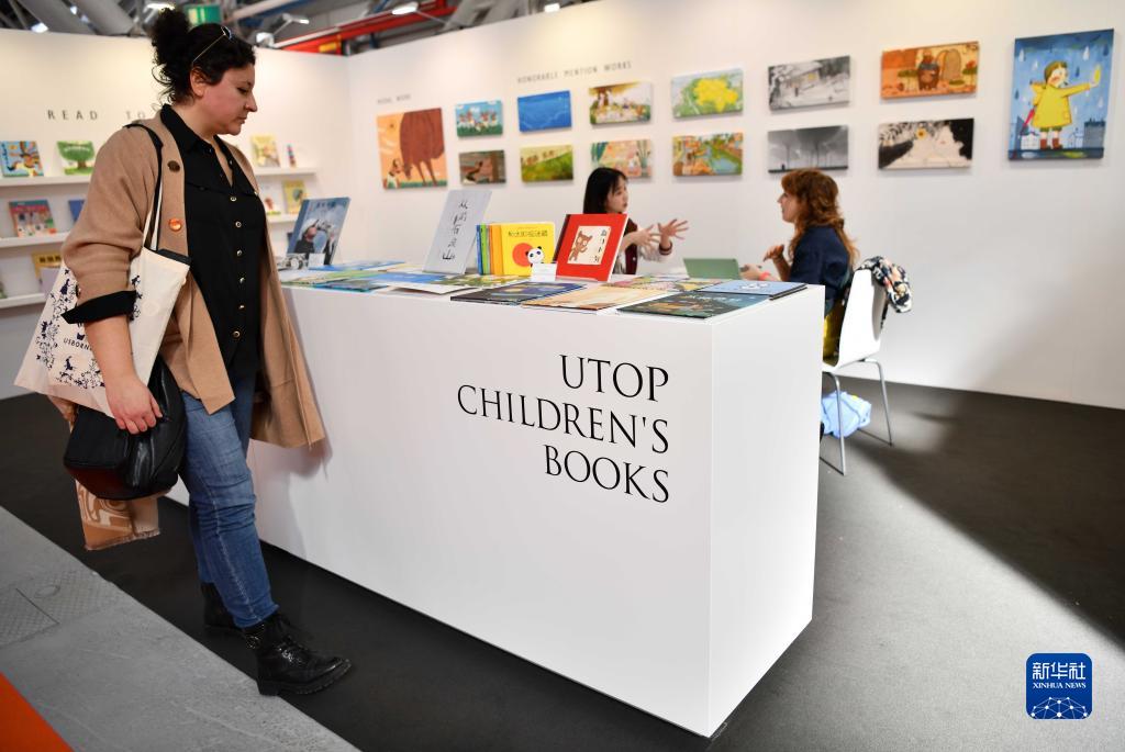 短短几个小时内,不少来自德国、荷兰、美国等国家的出版商、插画师、版权代理商等来到展位洽谈合作,兴致盎然地翻阅主题丰富的中国童书。不远处,禹田文化传媒、中国少年儿童新闻出版总社等中国出版机构展位内,参观者同样络绎不绝。明朗简洁的画风、温暖人心的小故事、独具特色的文化元素,都是吸引他们的理由。
