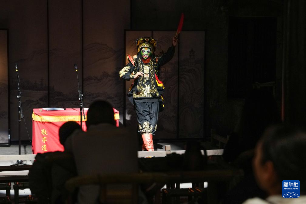 4月8日,人们在浙江省临海市台州府城文化旅游区的一家茶馆欣赏“变脸”表演。新华社记者 郑焕松 摄