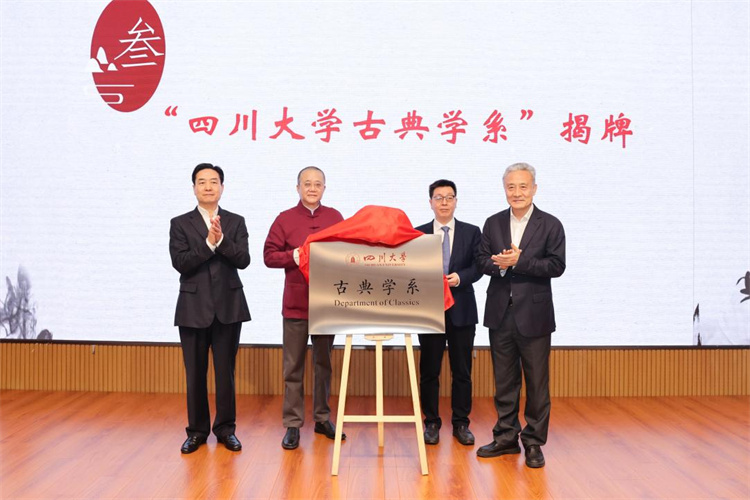 四川大学党委常委、组织部部长黄园在会上宣读了《四川大学关于成立古典学系的决定》。汪劲松向刘小枫教授颁发系主任聘书。甘霖、汪劲松、刘超、刘小枫共同为“四川大学古典学系”揭牌。