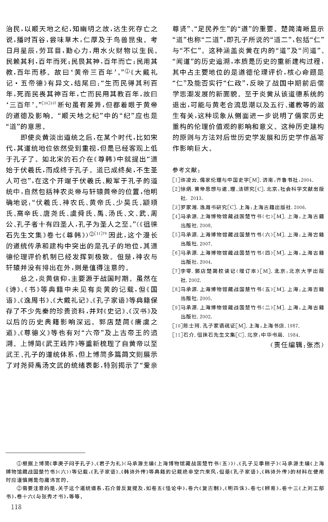简帛文献所见炎黄信仰与儒家道统的关系及意义