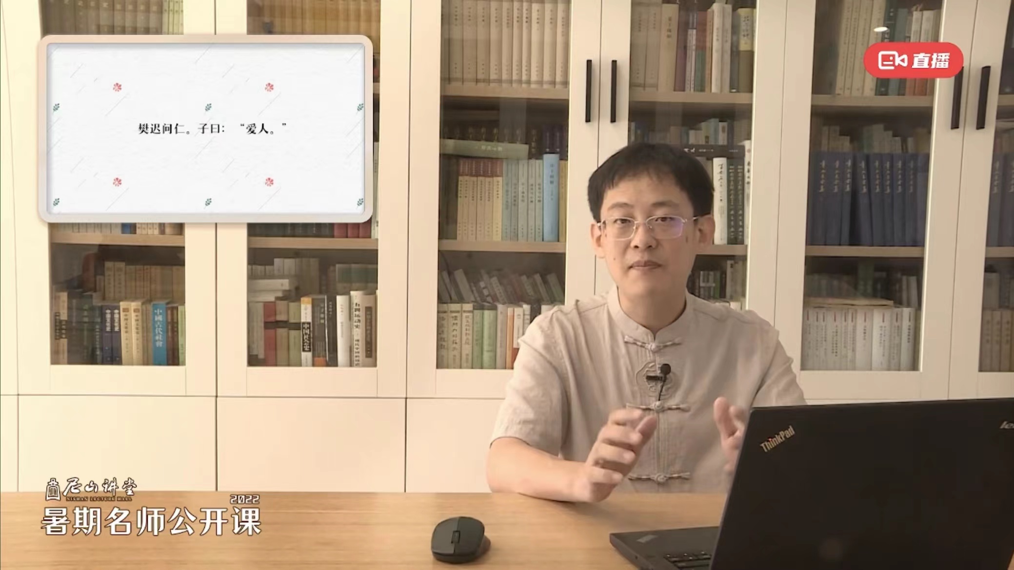 仁爱精神是儒家思想的核心,《论语》中亦有多处孔子对于“仁”的阐释。在当今社会,究竟如何通俗地理解孔子的仁爱思想?8月6日上午,“尼山讲堂·2022暑期名师公开课”如期开讲,北京师范大学文学院副教授、硕士生导师孟琢带来《如何理解孔子的仁爱思想》。孟琢引经据典,谈古论今,深入浅出为大家阐释仁爱思想的精神内核。全国各地孔子学堂、广大中小学师生和家长在线观看课程直播,各媒体平台累计在线人次达62万。