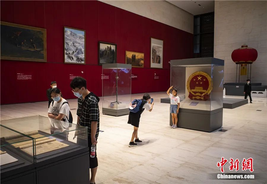 市民在中国国家博物馆内参观常设展览《屹立东方——馆藏经典美术作品展》。侯宇 摄