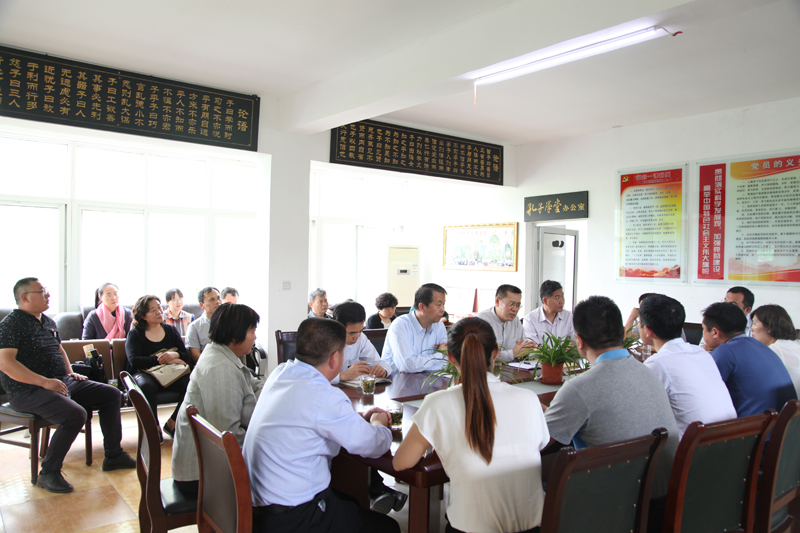 初夏的季节,百草芬芳、百花竞秀。5月15日上午,在青山绿水、瓜菜飘香的济南市历城区西营镇小南营村,中国孔子基金会秘书处召开了秘书处党组中心组理论第五次学习会议,并对小南营村孔子学堂建设实地调研考察。中国孔子基金会秘书处党组成员牛廷涛、邢成湖,副巡视员康承宝及秘书处部室主任,西营镇党委副书记、镇长孙德永,党委副书记李成龙、党委委员王斐等党员干部、小南营的部分党员干部参加了会议。