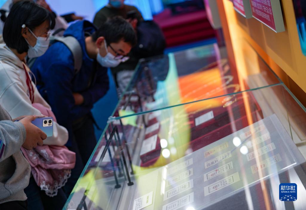 10月9日,观众在“奋进新时代”主题成就展上参观山西省太原市89岁老人韩玉峰收藏的12张选民证。新华社记者陈晔华摄