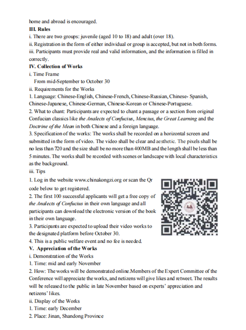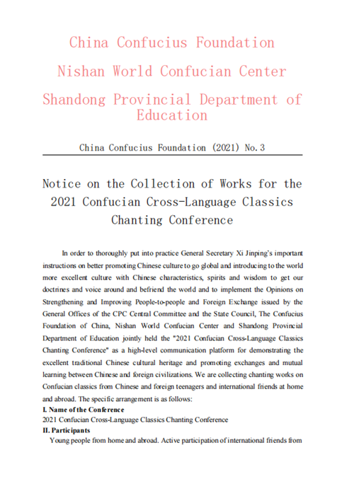 Notice on the Collection of Works for the 2021 Confucian Cross-Language Classics Chanting Conference