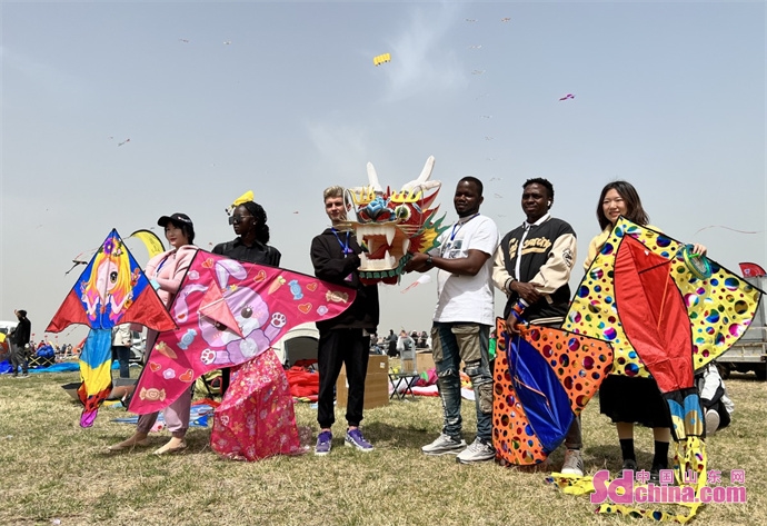 International students from Russia, Nigeria, Uganda and other countries were invited to the 40th Weifang International Kite Festival to experience kite flying.