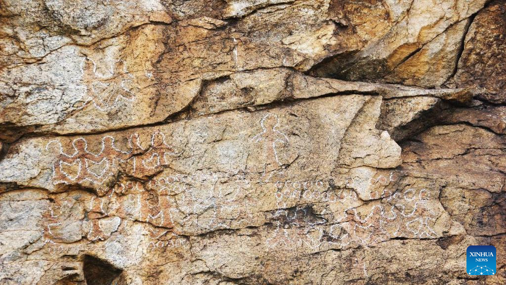 This undated photo shows the rock painting in the Hulun Buir grassland in north China's Inner Mongolia Autonomous Region. (Hulun Buir Daily/Handout via Xinhua)