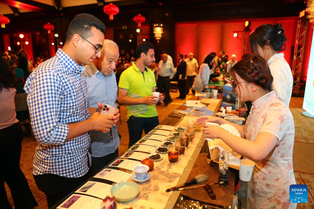 A tea-themed cultural salon was held on Thursday in the Egyptian capital of Cairo, with more than 200 people gathering to taste famous Chinese tea, experience tea-making art, and enjoy cultural performances.