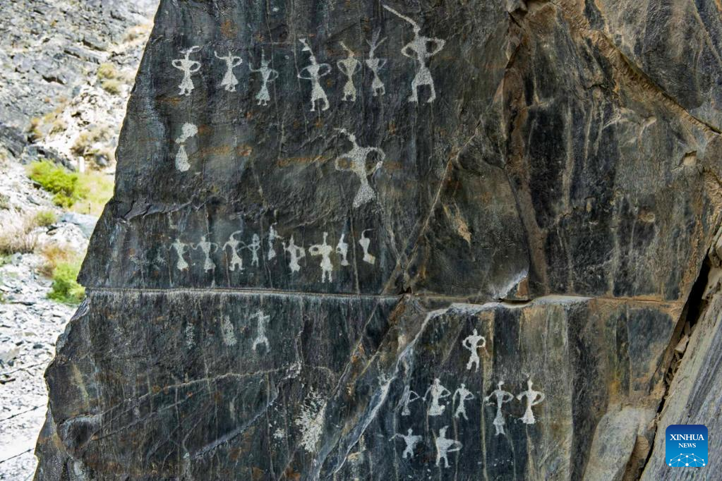 This undated file photo shows a rock painting featuring dancers in Jiayuguan City, northwest China's Gansu Province.