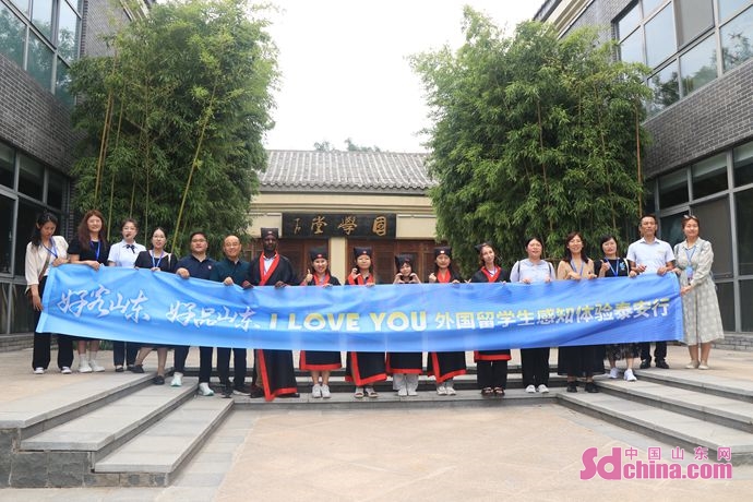 The activity of “Friendly Shandong Remarkable Shandong I Love You” international students experiencing Shandong was held recently in Ningyang County, Tai’an City. Six foreign students got a close-up understanding of Confucianism at Fusheng Cultural Park and personally experienced traditional customs such as ancient printing, Hanfu wearing, pitch-pot game and archery.