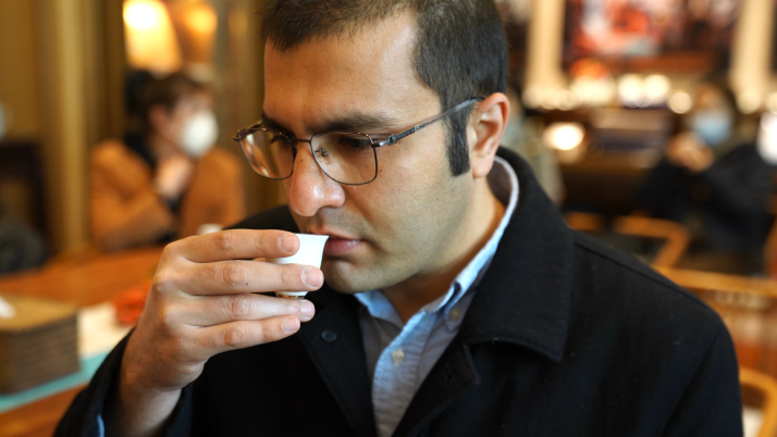 Ehsan Doostmohammadi savors Chinese tea (ZHANG WEI)