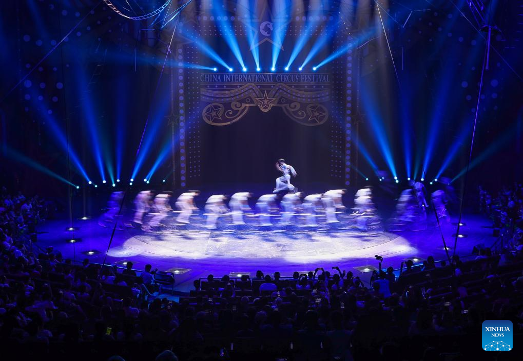 Acrobats from the China National Acrobatic Troupe perform during the 7th China International Circus Festival in Zhuhai, south China's Guangdong Province, Nov. 5, 2023. Nearly 200 acrobats from 18 countries and regions participated in the event. (Xinhua/Liu Dawei)