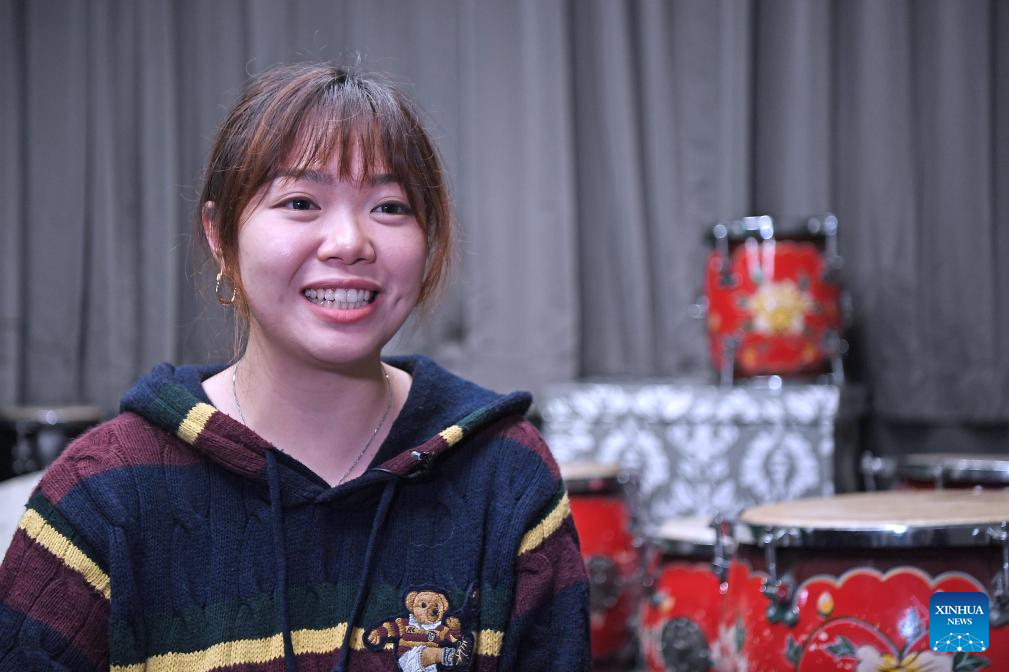 Felissa Chan, a pipa player of the Hong Kong Gaudeamus Dunhuang Ensemble, receives an interview with Xinhua in Hong Kong, south China, Dec. 18, 2023. (Xinhua/Chen Duo)