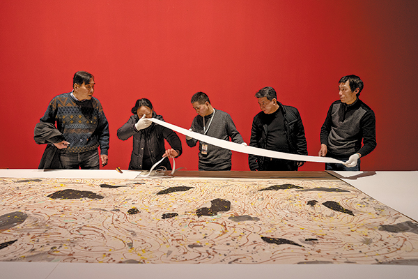 The crew from China Art Museum (Shanghai) prepare the exhibition.[Photo by Gao Erqiang/China Daily]