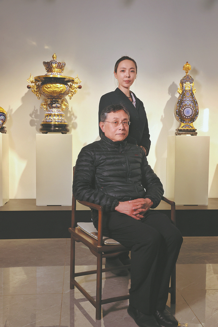 Zhang Yongzhen and Xi Wen's creations of cloisonne vessels feature traditional patterns and are inspired by ancient bronze ware. JIANG DONG/CHINA DAILY