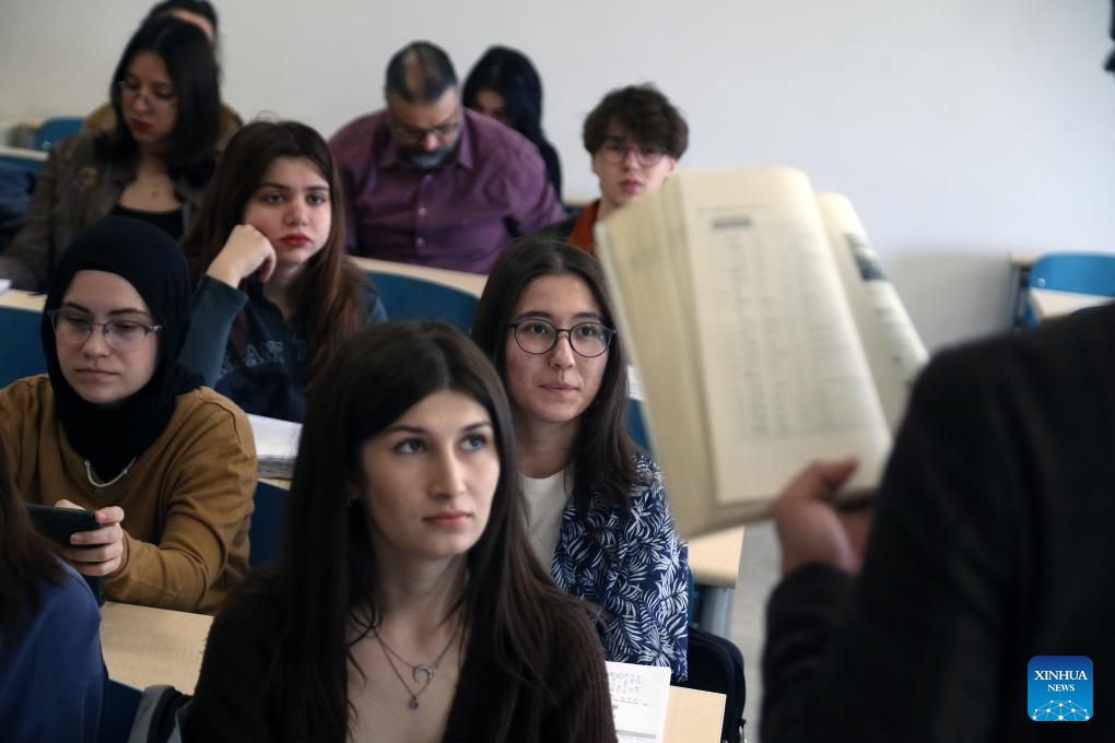 Students learn Chinese at Haci Bayram Veli University in Ankara, Türkiye, on March 26, 2024. In Ankara, the capital of Türkiye, the study of the Chinese language at Haci Bayram Veli University has opened doors to cultural enrichment and employment prospects in a country facing a tough job market. (Photo by Mustafa Kaya/Xinhua)