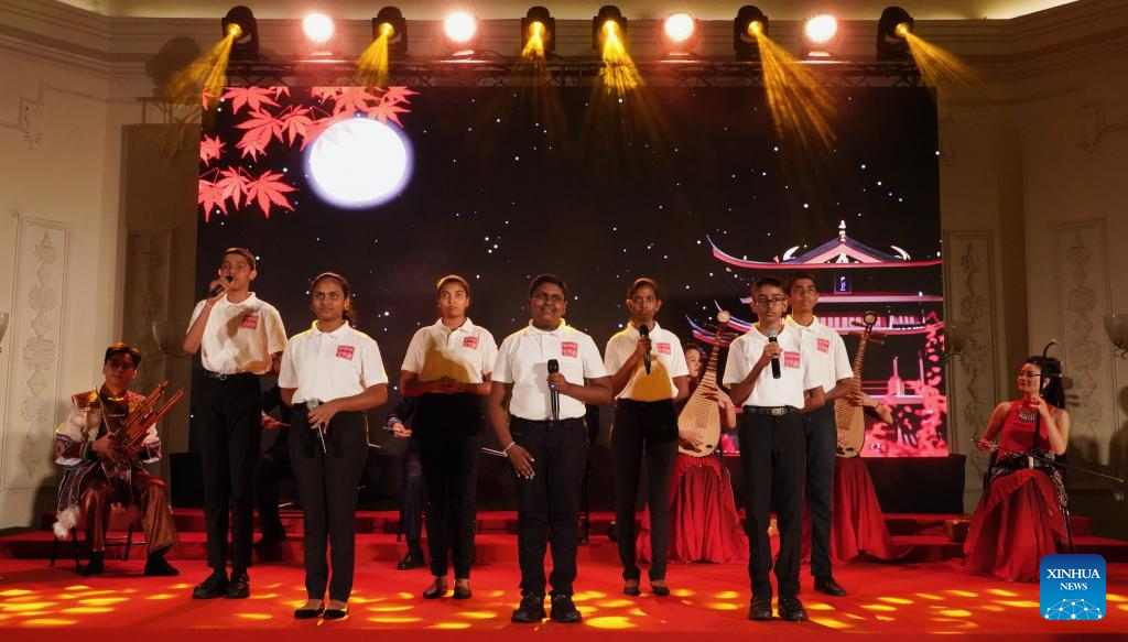 Sri Lankan students perform at the Mid-Autumn Poetry Gathering in Colombo, Sri Lanka, Sept. 16, 2024. (Xinhua/Wu Yue)