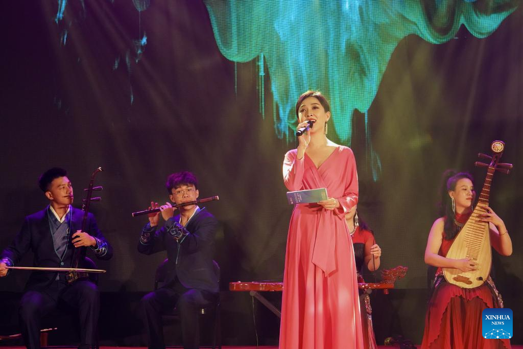 Artists perform at the Mid-Autumn Poetry Gathering in Colombo, Sri Lanka, Sept. 16, 2024. (Xinhua/Wu Yue)