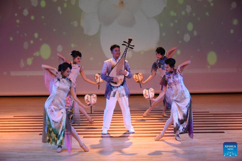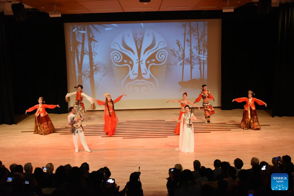Artists of an art delegation from central China's Hubei Province perform at an event celebrating the Mid-Autumn Festival in Christchurch, New Zealand, Sept. 15, 2024. (Xinhua/Lu Huaiqian)
