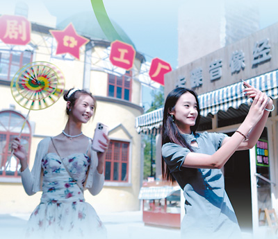 A tourist takes a selfie at the Shenyang Zhongchen film town cultural industry park in Shenyang, northeast China's Liaoning Province. (Photo courtesy of the Shenyang Zhongchen film town cultural industry park)
