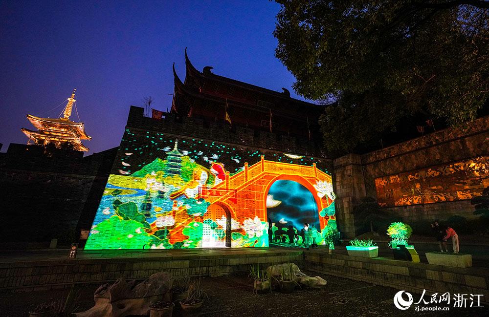 On March 5, the Hangzhou Nine-wall Light Show and the Drum Tower Song-style Light Show were staged at the Drum Tower Square in Qinghefang District of Hangzhou.