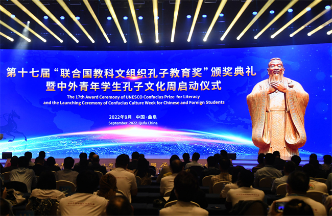The 17th Award Ceremony of UNESCO Confucius Prize for Literacy and the Launching Ceremony of Confucius Culture Week for Chinese and Foreign Students was held on Tuesday in Qufu, the birthplace of Confucius in East China's Shandong province. [Photo/Xinhua]