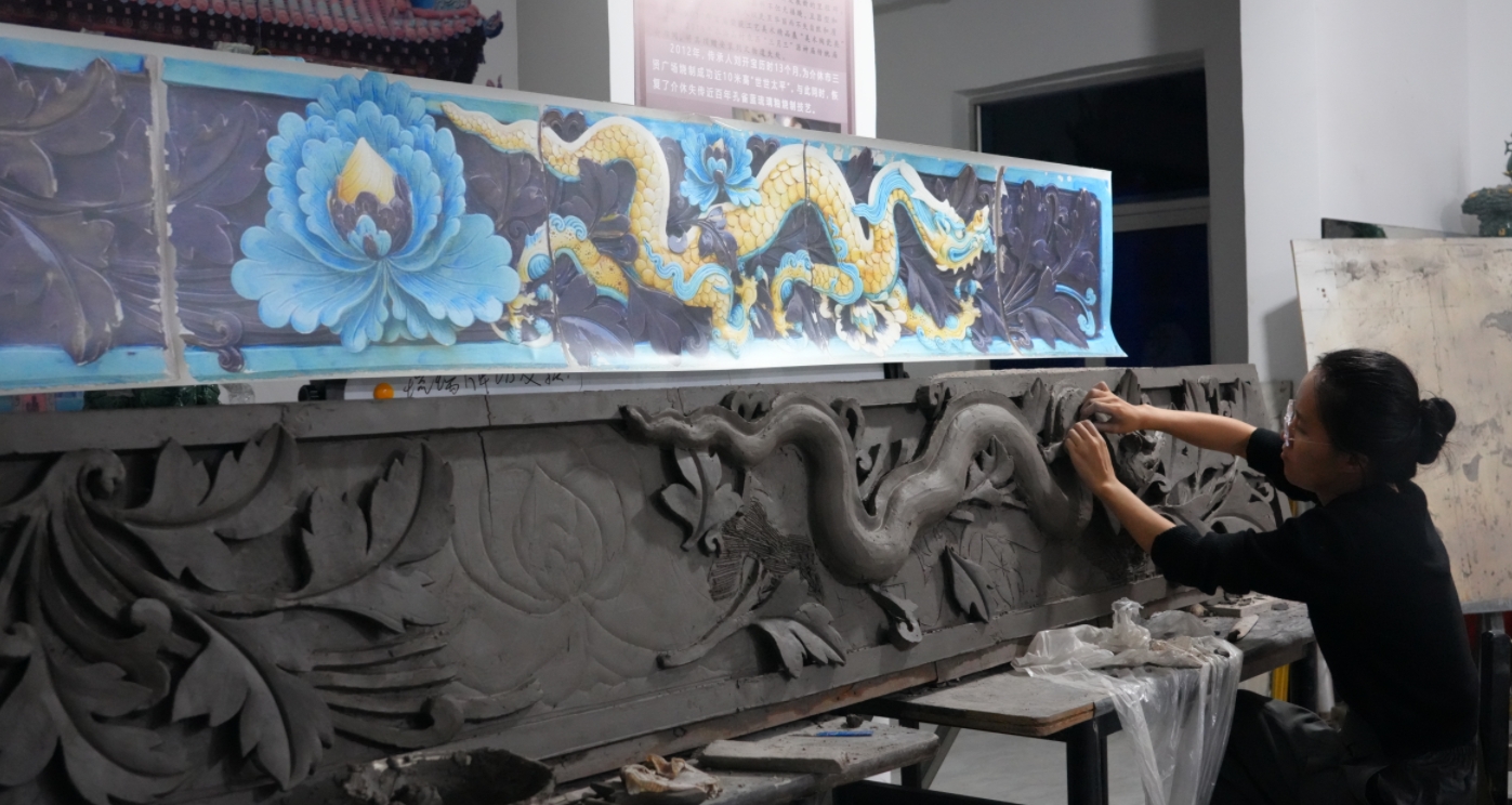 Liu Wenting, a fifth-generation inheritor of her family's colored glaze tradition in Jiexiu, a county-level city in Jinzhong, Shanxi Province, is recreating a full-size replica of a Ming-dynasty (1368-1644) dragon-patterned glazed tile, currently preserved at the British Museum.