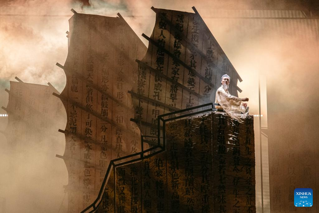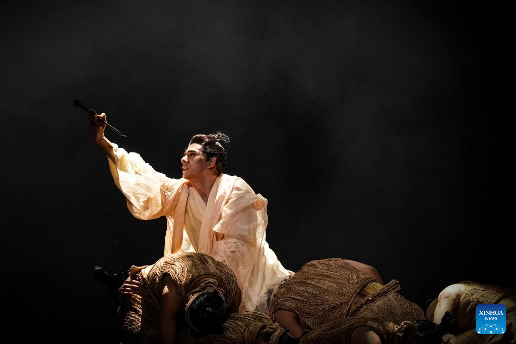 An actor performs during the dance drama "The Exploitation of Nature's Works" ("Tian Gong Kai Wu") in Nanchang, east China's Jiangxi Province, June 1, 2024. (Jiangxi Cultural Performance Group/Handout via Xinhua)