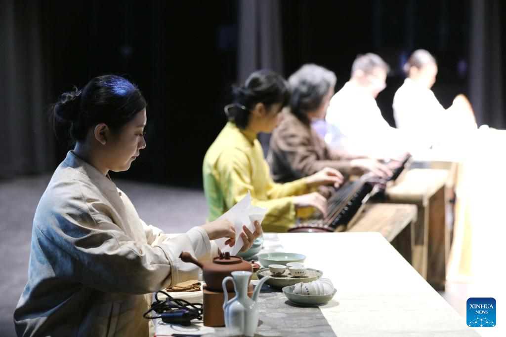 Artists from south China's Guangdong Province present a performance showcasing the charm of China's Lingnan culture at the National Museum of New Zealand in Wellington, New Zealand, Sept. 25, 2024. This cultural promotion event was jointly held by the China International Cultural Association, the Chinese Embassy in New Zealand, the Guangdong Provincial Department of Culture and Tourism, the China Cultural Center in Wellington, and co-organized by the Federation of the Chinese Association of New Zealand. It aims to promote exchanges and mutual learning of civilizations between China and New Zealand. (Photo by Meng Tao/Xinhua)