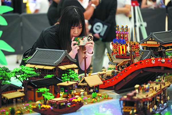 Covering 47 square meters, the world's largest Lego exhibit, showing Sept 25 to Oct 31, has been the latest weekend and holiday hot spot, delicately piecing together a marvelous world where the old and new converge.