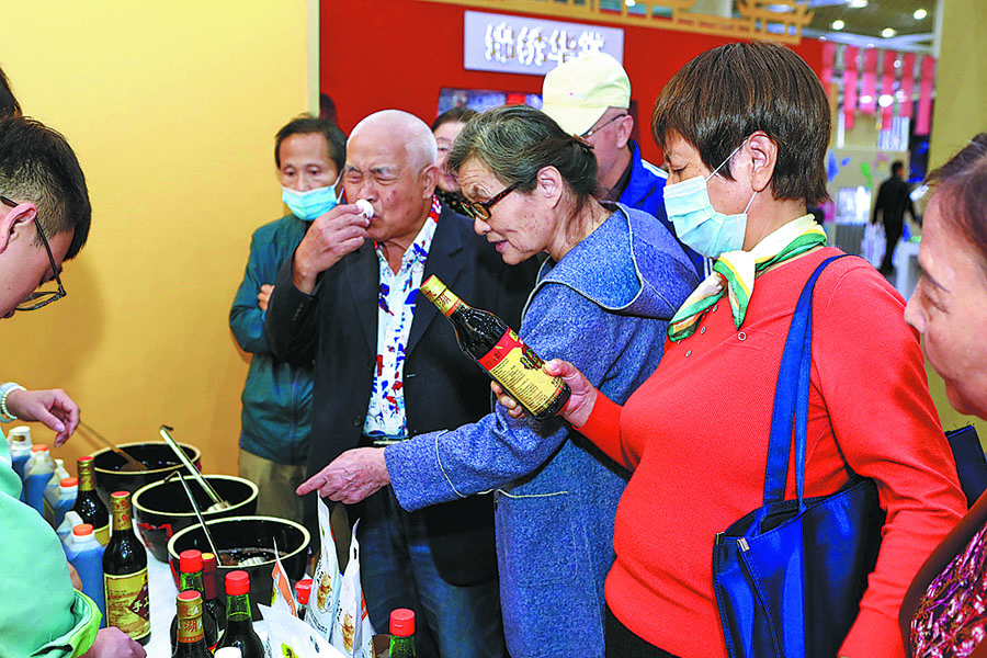 Visitors try distinctive cuisines, vinegar especially, as pictured. The cuisines were a highlight at the expo.[Photo provided to China Daily]