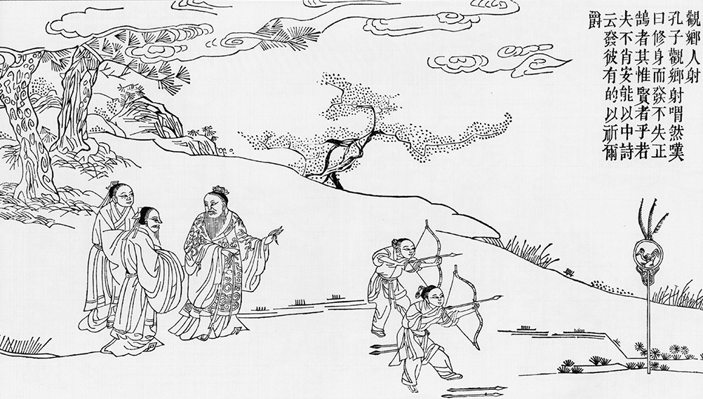 When Confucius was watching local archery ceremony, he commented, "People who pay attention to self-cultivation do things like archery. A man of virtue hits every targets! If a man is wicked, how could he hit the target?" According to The Book of Songs, those who hit the target can invite those who failed to drink.