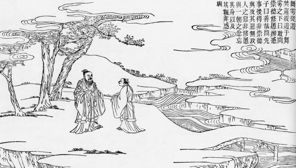 Confucius' disciple Fan Chi once accompanied him for a walk under the Wuyu alter where rain-praying ritual was performed. Fan Chi asked Confucius, "Sir, how can we improve virtue? How can we correct our evil thoughts? And how can we tell right from wrong?" Confucius said, "Very good questions! You should concentrate on your work before you can gain something. This is the way to improve your virtue and review your evil thoughts. Disregarding your own safety and even that of your family members because of a moment of anger is the wrong thing that you need to distinguish and avoid. "