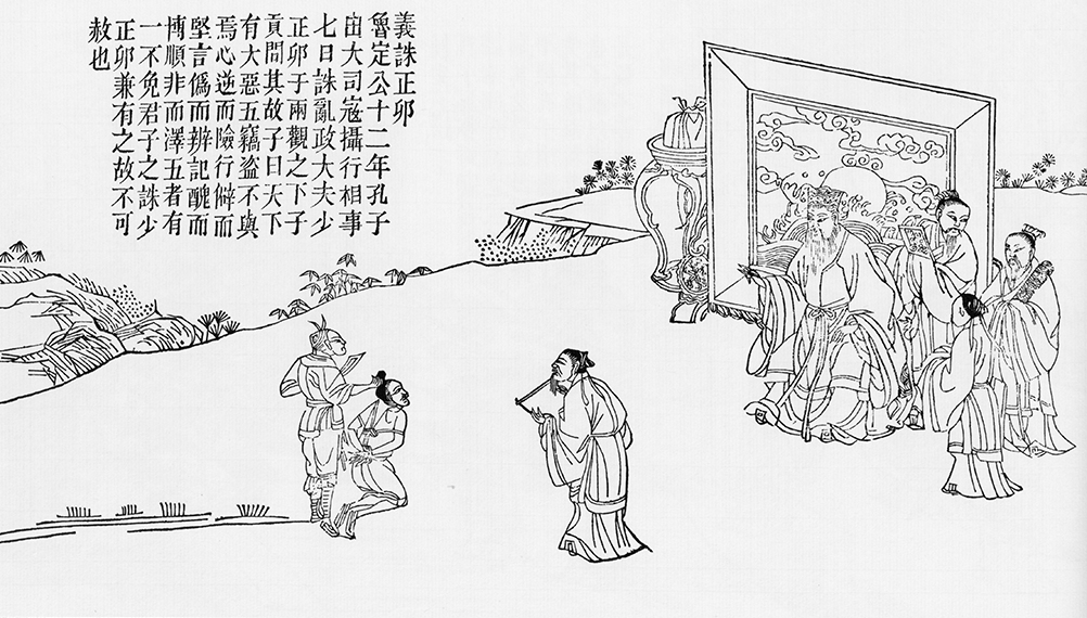 In the 12th year of the reign of Duke Ding of Lu, Confucius was appointed as Si kou (a minister of justice), and acting prime minister of Lu state. On the seventh day of his reign, he killed Shaozheng Mao, a Da fu who kept disturbing the government. Zigong asked Confucius why he killed Shaozheng Mao. Confucius said, "There are five kinds of human sins: first, knowledgeable but malicious; second, eccentric but impenitent; third, always talking improperly but good at sophistry and incitement; fourth, use one's extensive knowledge to preach evil ideas; fifth, appreciate and embellish wrong views. Whoever commits one of these five sins should be killed. Shaozheng Mao must be killed because he committed all these five sins at the same time."