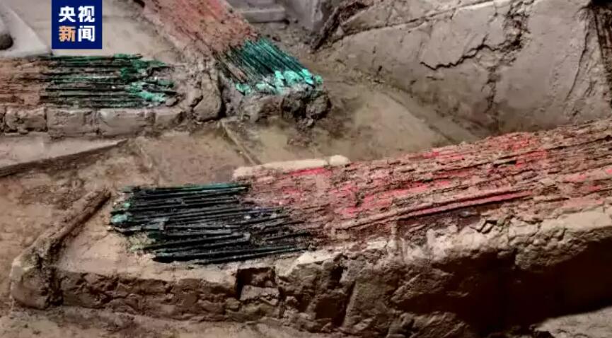 整然と積まれている秦の時代の「飛び道具」・青銅の矢3束