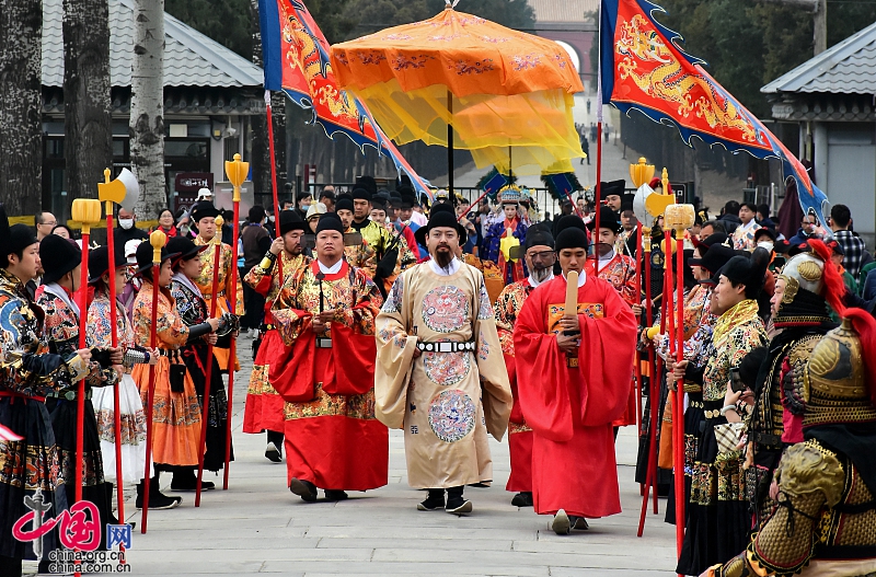 北京市昌平区の明十三陵神道風景名勝区で2日、第3回北京明文化祭りの「出警儀仗」行進が行われた。「出警入蹕図」の明王朝儀仗礼が再現された。