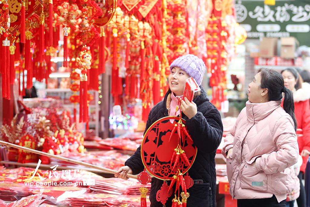 四川省綿陽市の市街地にある花園市場では1月1日、「福」の字や対聯(門の両脇などに飾られる対句を記した装飾)、提灯、各種ぬいぐるみなど辰年の要素が取り入れられた装飾品が店先に並び、賑やかな祝日ムードを醸し出していた。大勢の市民が市場を訪れ、商品を選び購入していた。人民網が伝えた。