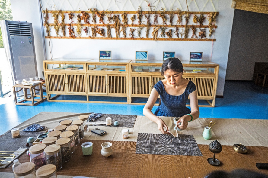 향사(香事) 무형문화 전승자 정샤오치아오가 향을 만들고 있다.