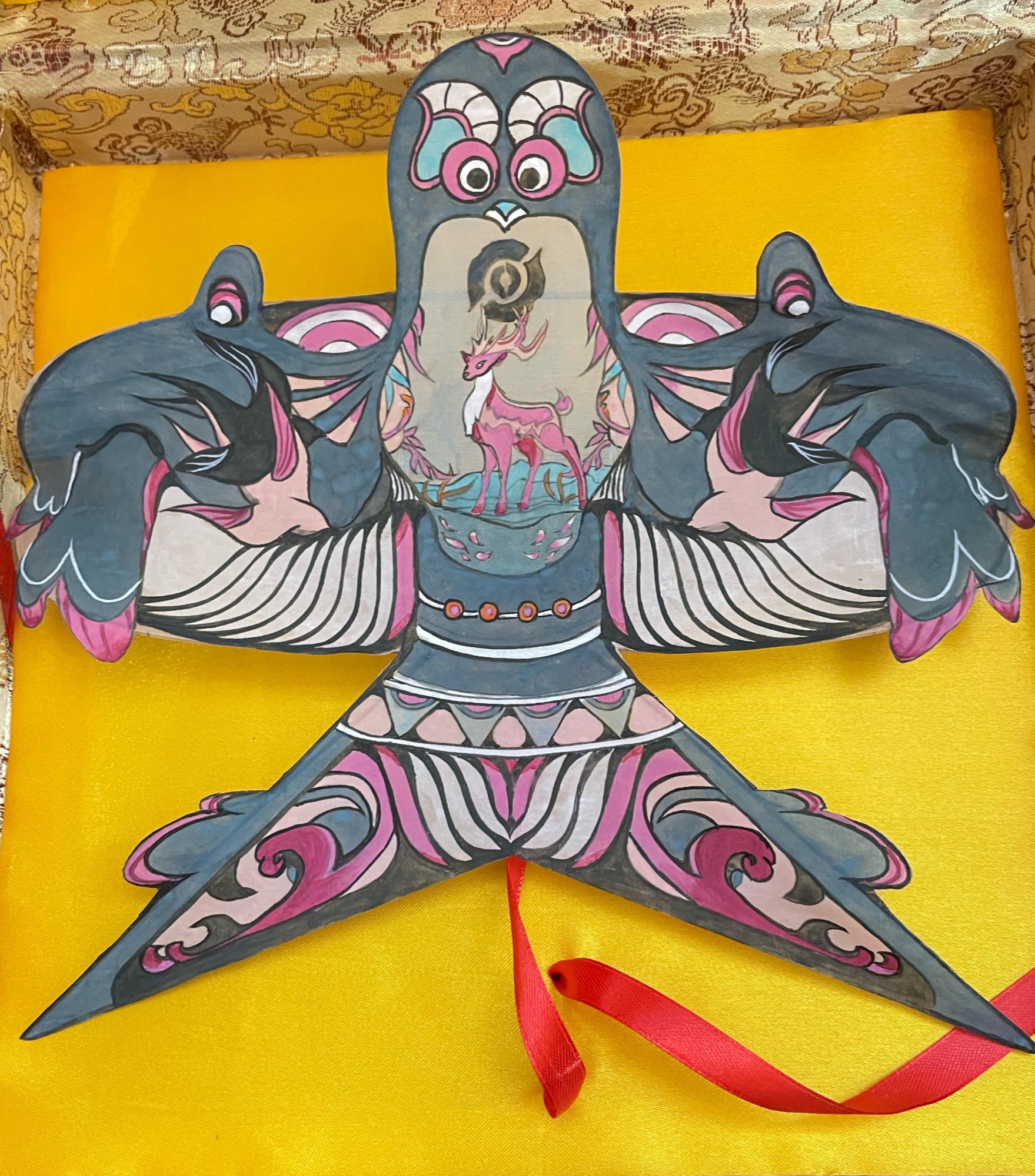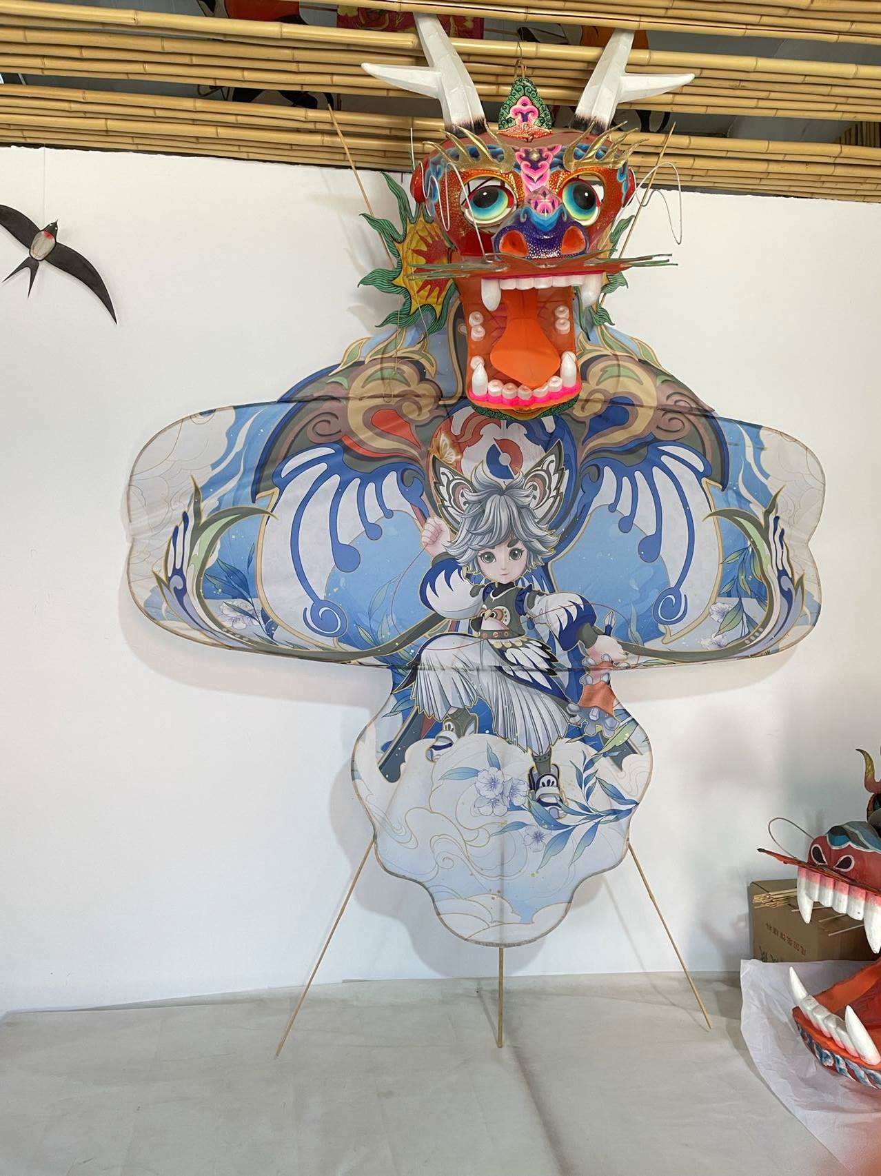 구어홍리가 자신이 제작한 연을 전시하고 있다.