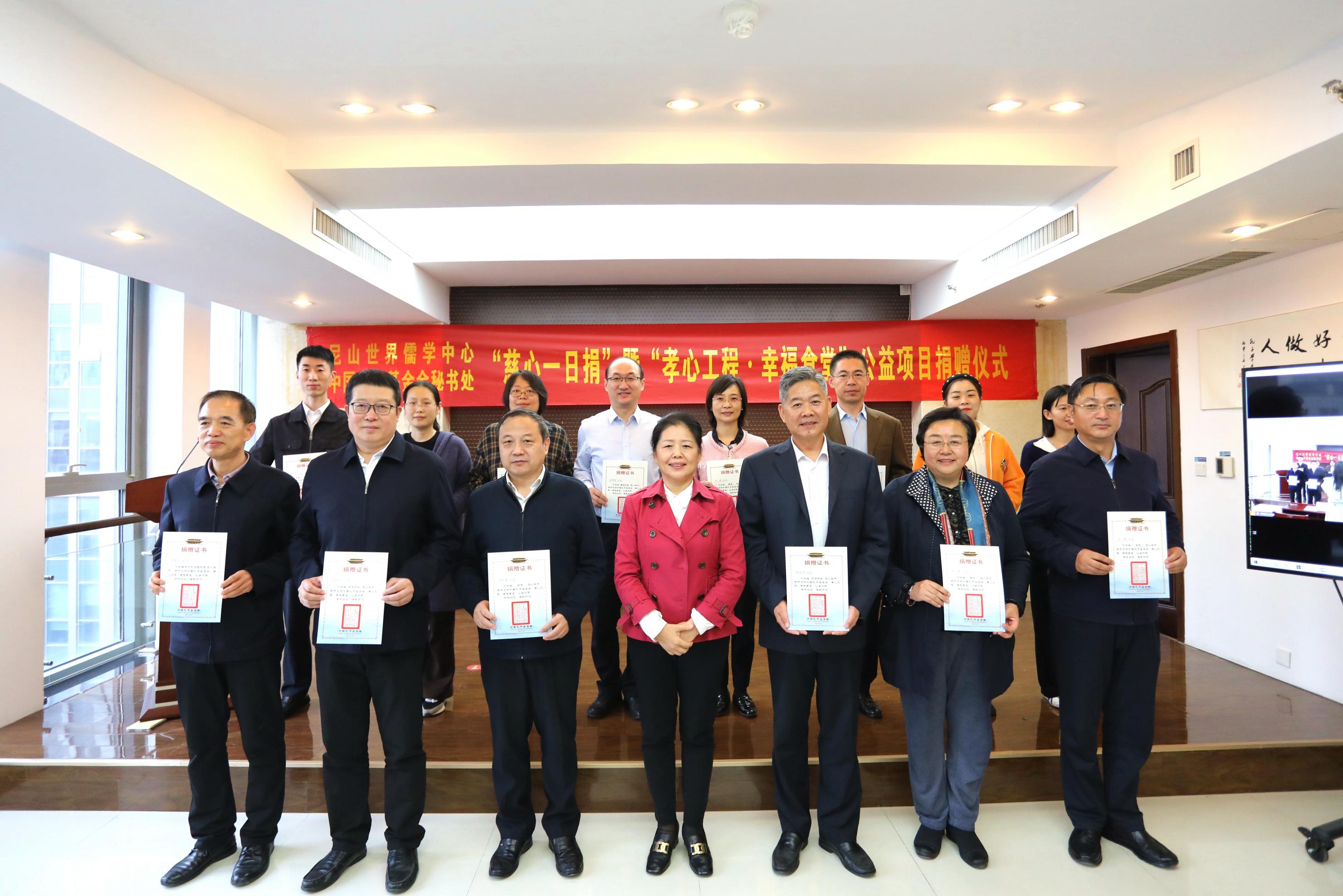 봉사의 기풍을 널리 알리고 행선(行善)의 즐거움을 전파하며 동시에 중국 공자기금회 공익사업에 힘을 보태고자 10월 25일 오후, 니산세계유학센터(중국 공자기금회 사무국)에서는 ‘자심일일기부’및 ‘효심공정·행복식당’기부금 기증식을 진행하였다. 니산세계유학센터(중국공자기금회 사무국) 당위원회 서기, 부주임, 중국공자기금회 부이사장을 겸임하고 있는 궈청옌(國承彥) 사무총장이 행사에 참가하였다.