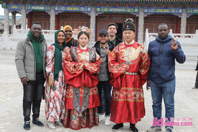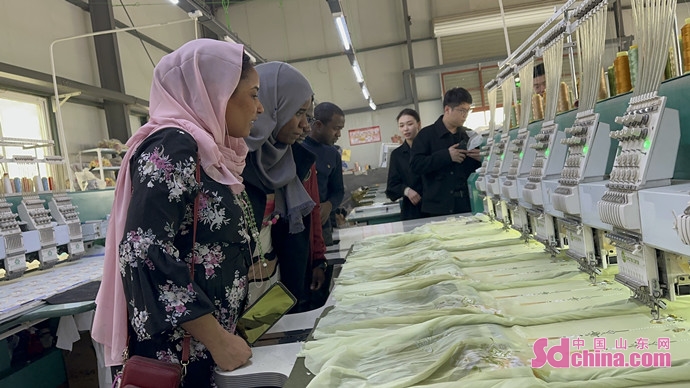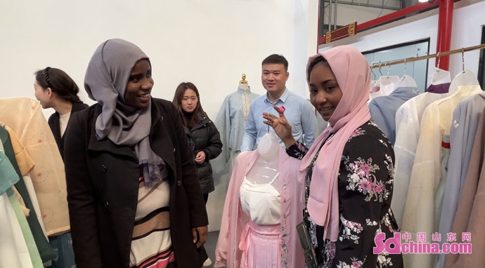 차오현의 한푸는 전국적으로 유명하다. 허쩌(菏澤)시 차오현에 와서 어찌 한푸의 매력을 체험하지 않을 수 있겠는가? 3월 26일, 각기 다른 나라에서 온 6명의 외국 친구들이 차오현의 '중국 타오바오진(淘寶鎮)'대시장에 들어섰다.