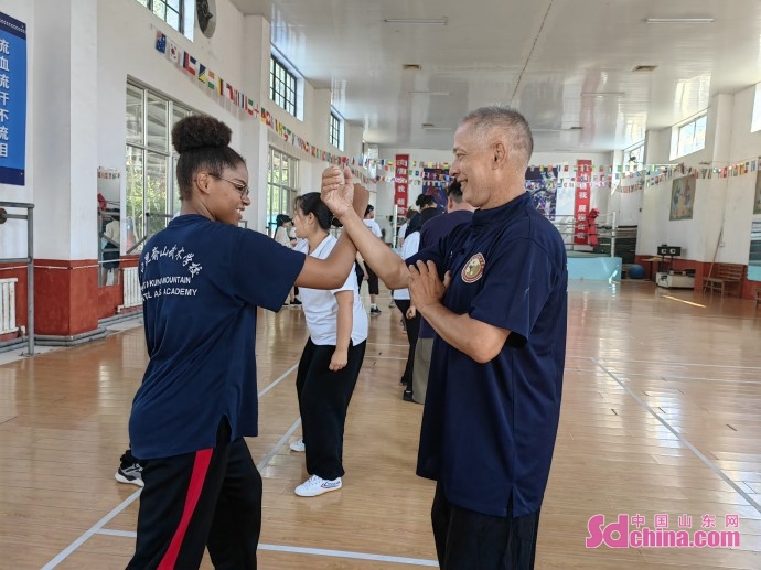 훈련장에 들어서 코치는 학교 외국인 학생들을 이끌고 팔을 뻗고 발차기를 하며 동작이 하나하나 중국 무술의 매력을 보여주었다. 외국인 ‘왕훙(網紅)’은 선생님에게 가르침을 청하고 각자 선생님에게 ‘한 수’를 배운 후 학교 학생들과 교류하고 성과를 현장에서 보여주었다. 또는 무술 선생님들은 태국권, 사마귀권, 영춘권 등 전시하하고 외국인 ‘왕훙(網紅)’에게 중국 무술 정신을 들려주기도 했다.