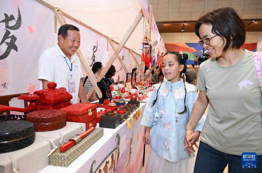 8월 7일, 방문객들이 행사장에서전통공예품을구경하고있다. [신화사리허기자촬영]